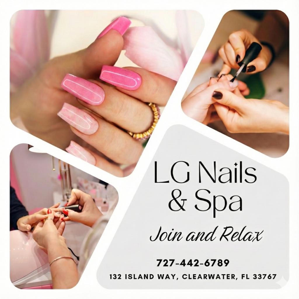 Visit LG Nail Spa, your go-to Nail Salon near 33767, conveniently located at 132 Island Way, Clearwater, FL 33767